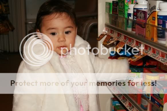 圣诞节没有和圣诞老人照相。一向保守谨慎,安全第一的老公认为,圣诞老人抱那么多孩子得传播多少H1N1fluvirus啊,所以就shopping的时候给芷兰在商场里照了些照片。
