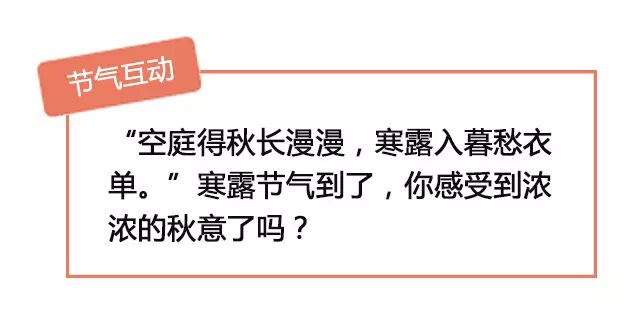 ——《池上》白居易|寒露|《月令七十二候集解》说:“九月节,露气寒冷,将凝结也。”寒露的意思是气温比白露时更低,地面的露水更冷,快要凝结成霜了。“袅袅凉风动,凄凄寒露零”,寒露正是一年之中气温由凉爽到寒冷的开[