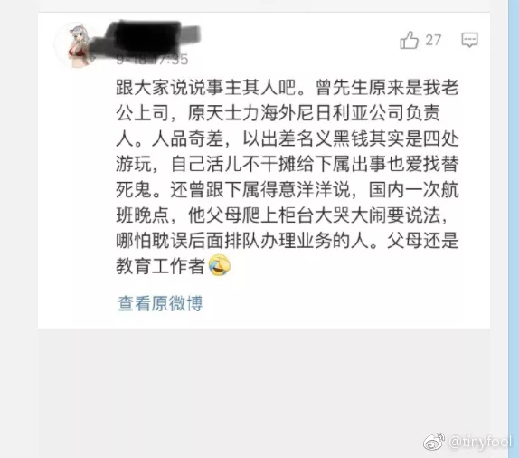 太牛了,瑞典事件的曾先生的身份已经被我微博的网友@本無思維和@锖铨找到了。起因是一个叫崔二喜和一个不知名的微博网友,都提到了曾先生,两个人说的信息都比较一致。根据不知名网友的信息,@本無思維怀疑曾先生是天士力的尼日利亚分公司经理曾骥。而@锖铨在崔二喜微博也搜索到了曾骥的名字。汗,牛逼。 看来这公司不行啊,曾先生都分公司总经[
