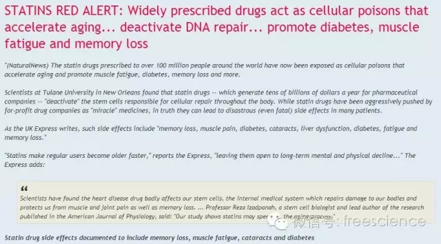 >>>新奥尔良杜兰大学科学家发现,在世界各地超过近2亿人口服用的他汀类药物,现在已经显示是细胞的毒药加速老化,并能促进肌肉疲劳,糖尿病,记忆力减退等,是细胞的毒药。