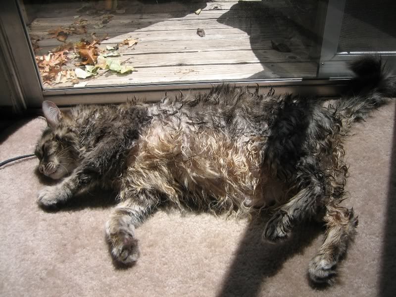 湿漉漉的,失去了本毛以往的风度,非常气愤,决定窝在爸怀里,气死那个给我洗