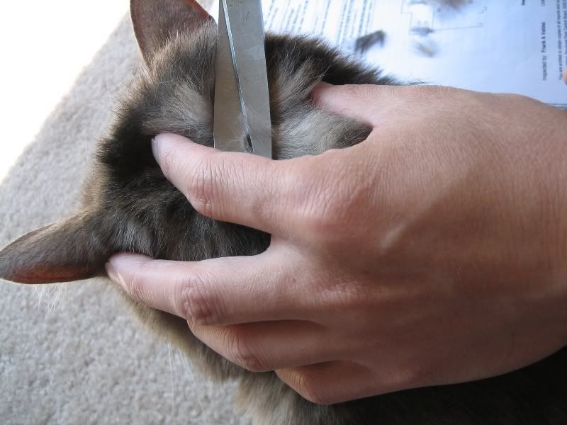 第一步:剪毛(爹,你小心点!你要是剪了偶的皮,偶咬你!!)