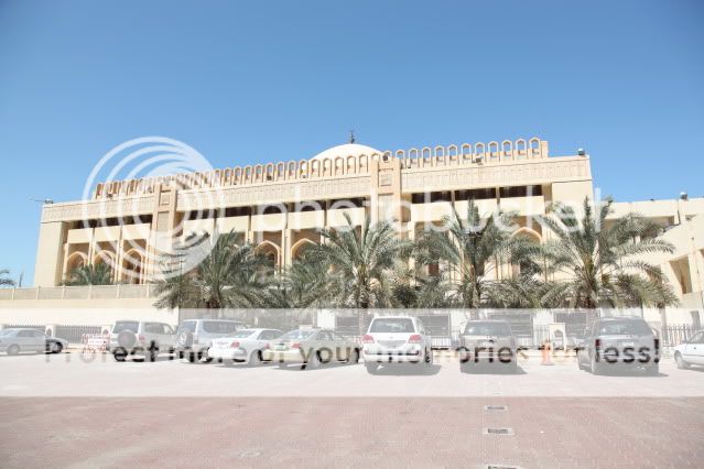 第一次去科威特大清真寺(TheGrandMosque)是一个多月前,看见它的大门前有栏杆围着的大停车场,绕着大清真寺转了三圈,愣没找到进停车场的路口,绕第四圈时,不管3728拐进一条像是内部使用的单行道,看到一个门岗就问是否可以进去参观?也不知那门岗有没有听懂我们的问话,反正他就拉起升降杆放我们的车进去了。