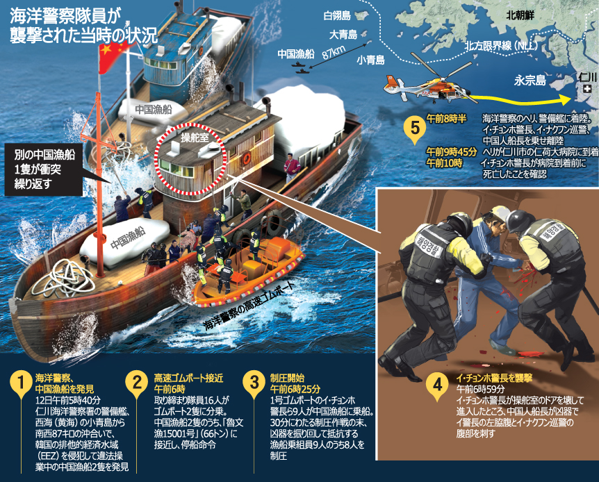 文章援引中国国土资源部海洋办公室副主任肖汉强的话说,事件发生地处中韩黄海大陆架划分有争议的地区,因此中国渔民侵犯韩国管辖海域的证据不足。