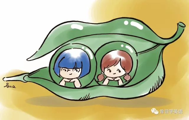 春色满园关不住,阿狗开心跳入墙。时间过得飞快,二月的情人节特辑今天迎来最后一期。我们要来聊一聊同一个性情相投的人在一起,是一种怎样的体验。TwoPeasInAPod话说某日午餐时间,同事们都聚在厨房里聊天。同事A谈起自己的一位好友,他说,Joe人很幽默,他太太Julie也很风趣,Theyareliketwopeasinapod。两人就像一个豆荚里的两颗豆!曾哥一听到有趣的俚语,立刻两眼放光,[