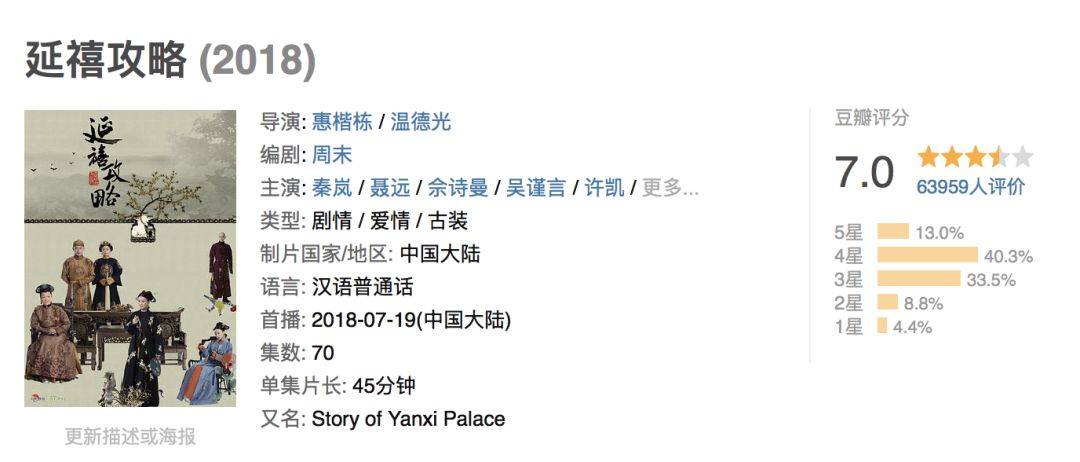 说实话,如今在豆瓣评分已经攀升到7的《延禧攻略》,说是于正打好的一次翻身仗,一点都不为过。除去仍然有些经不起推敲的剧情和台词来说,《延禧攻略》的格局确实上升了不少。它对女性的生存和晋升有了更深层次的思考,丢开傻白甜靠着天下男人都爱我的好运,它愿意直视女主的阴谋诡谲,坦诚揭开那条成功的路上所布满狰狞和丑陋。在这场深宫大戏的背后,的确有[