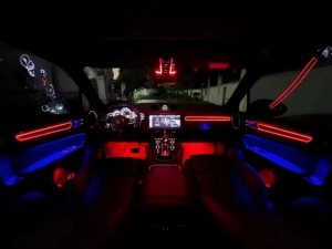 车内氛围灯是一种起到装饰作用的照明灯,通常是红色、蓝色、绿色等多色组成,主要为了使车厢在夜晚时更加绚丽,烘托气氛,营造室内情调。让原本单一的内饰更加的丰富多彩,所以现在的新车氛围灯已经成为了必不可少的配置作为老款车型宝马6系原车高配的车型也有带双色氛围灯,只不过很暗几乎看不到有灯光通过后期也可以升级高亮的八色氛围灯,八色氛围灯八种颜[