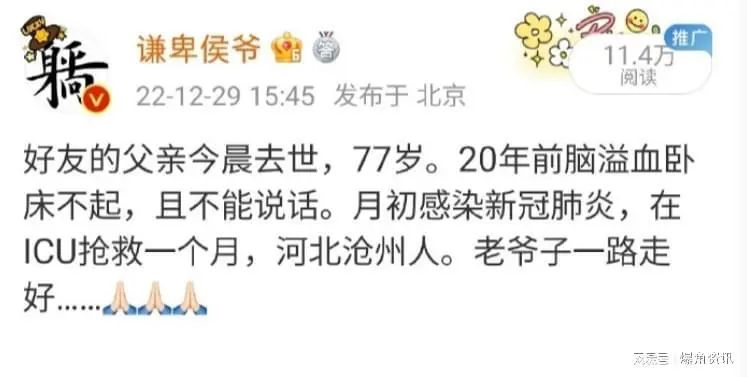 农村疫情现状!网友爆:棺材价翻1.5倍,唢呐班子成稀缺资源全产业链平台研究2023-01-0505:46Postedon上海近期,如北京、上海、成都等大城市的疫情高峰逐渐过去,呈回落之势。阳康的人群已开始恢复正常工作生活。但是这一波疫情正在农村地区肆虐,老年人染疫去世者甚多。日前就有网友爆料,其好友的父亲于12月29日去世,河北沧州人,终年77岁,患脑溢血卧床不起已有20年,[