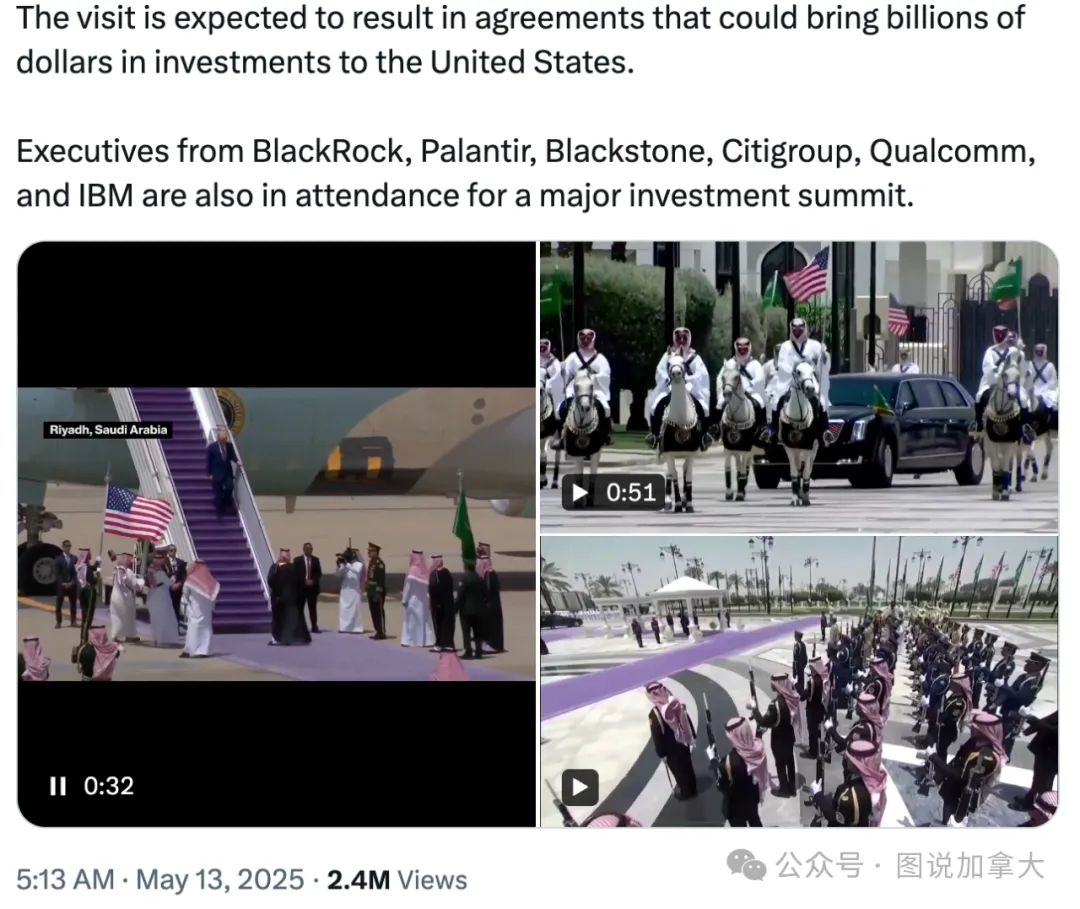 https://mp.weixin.qq.com/s/cSSuCKqG31OsTGTQnR523g见证奇迹!能让豪横的沙特瞬间穿越的只有他Original图说加拿大图说加拿大2025年05月14日11:06看多了这个世界的阴暗、龌龊和肮脏。。。来洗洗眼睛,看看这个世界鲜活的一面!川普确实自带流量和光芒,第二任期的第一次正式出访沙特,分分钟就炸上了热搜第一。沙特的含金量有目共睹,有钱就任性,然而接待老川秒变迷妹,贡献一个又一[