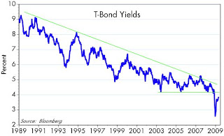 Yields on 30-year T-bonds hit a new year-to-date high on Friday. At 3.88%, they are now 135 bps above their all-time lows of last December. Of all the things that are bouncing these days, rising yields on Treasury bonds are potentially the most significant. Investors drove yields down to incredibly low levels last December, when fear was at its peak and expectations of a global depression and deflation were rampant.