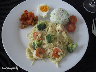 看到 程霞他们的 凉拌蔬菜吃完后,丁诺收拾走了色拉盘,端来了意大利面条。