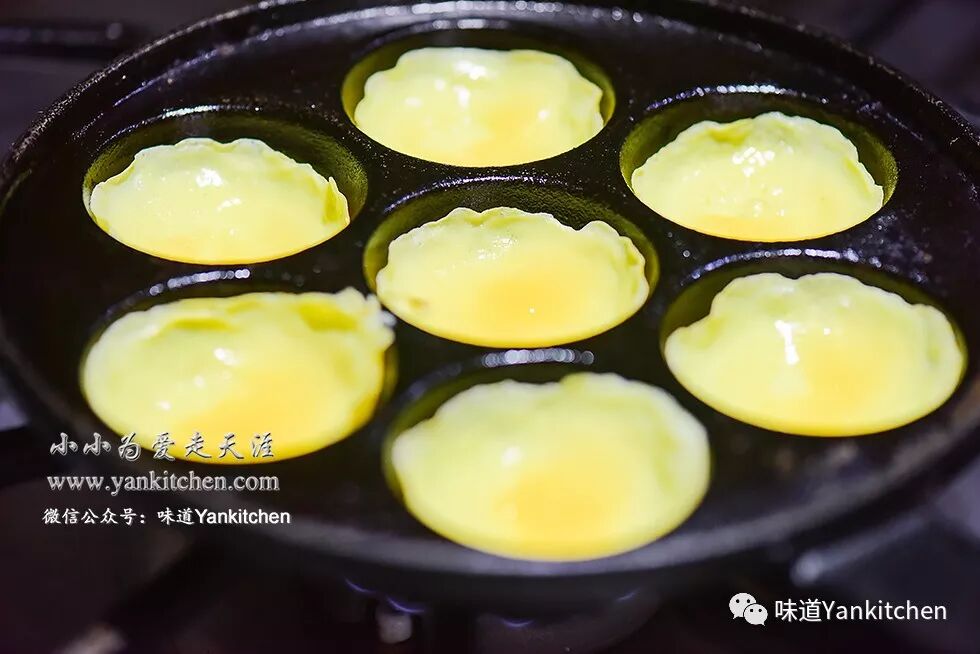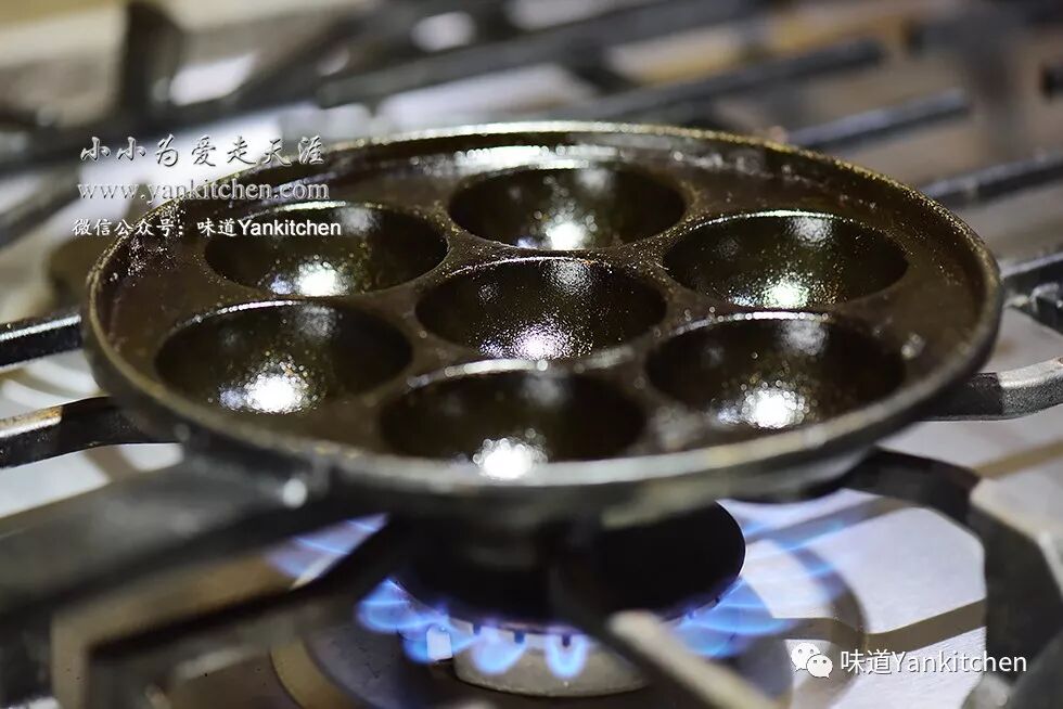 当当当!请出我家的蛋饺神器,这个铸铁的pancake puff pan! 别人家用勺子做蛋饺,一次只能做一个,我可以一次做7个,效率大幅度提升,得意的笑啊O(∩_∩)O~
