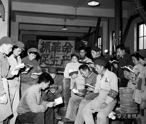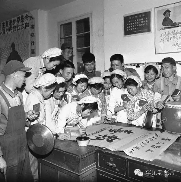 纺织厂出个喜报,也要手拿红宝书。照片拍摄于文革期间,晓庄/摄。