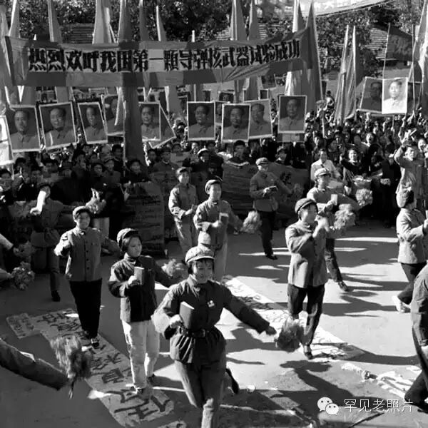 1966年,南京大专院校红卫兵走上街头,庆祝我国首次核导弹试验成功。晓庄/摄。