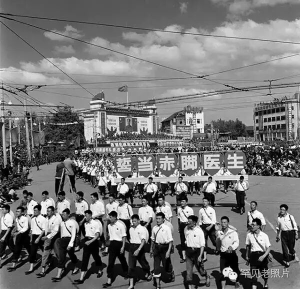 1966年10月1日,国庆节,南京市赤脚医生游行队伍。晓庄/摄。