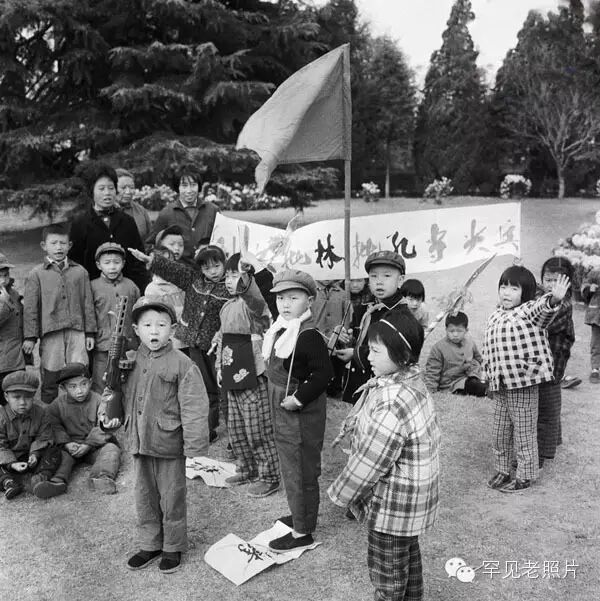 1966年,南京市红小兵合唱队高唱毛主席语录歌。晓庄/摄。