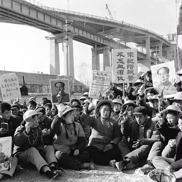 1968年,参加南京长江大桥建设的工人在大桥下举行忆苦会,以“牢记阶级苦,不忘血泪仇”的革命精神鼓励大家参加大桥建设。晓庄/摄。