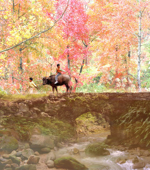 骑牛过小桥
