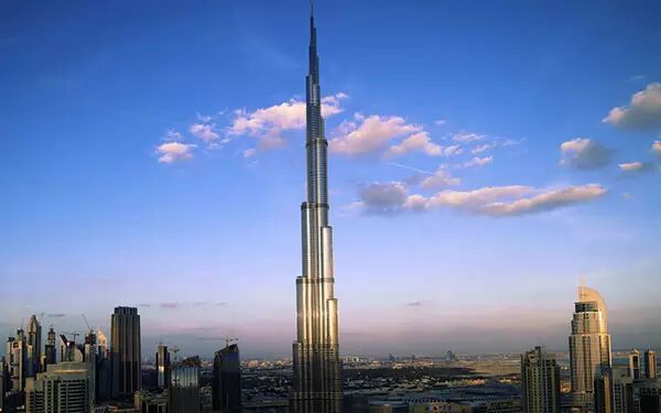 斥资30亿美元打造,高828米,为目前世界上最高建筑。塔内第124层为全球最高的观景台,这里有世界上最快的电梯,据说速度最高可达17.4米/秒,从1楼到124楼观景台,仅用56-57秒。现代都市规划布局、座座奇异的摩天大楼,以及海天一色的美景,尽收眼底。