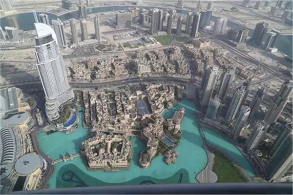 白天在哈利法塔观景台俯瞰迪拜。