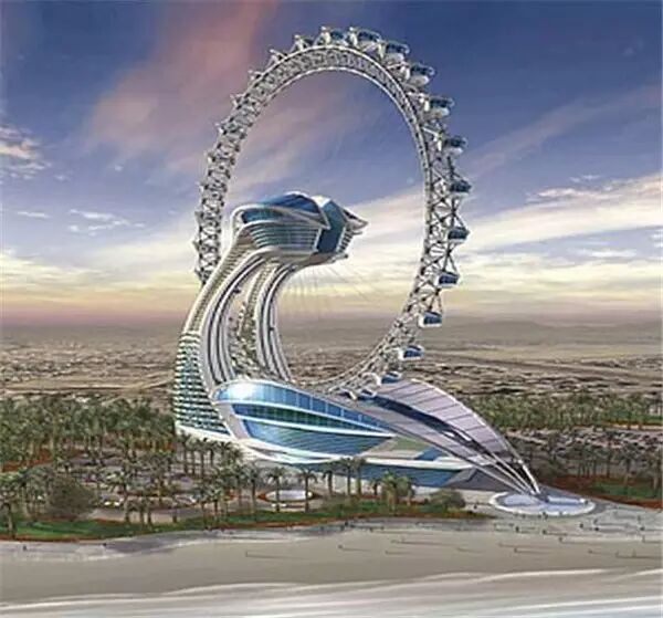 这只是一个概念,是在迪拜上空300米处设计的一座冒险性旅游城市,仅用象征雨水的倾斜支架支撑。由黎巴嫩建筑师纳迪姆·卡拉姆设计。在半空中,与整个地区遍布的摩天楼形成对比和反差。这个设计的确疯狂。