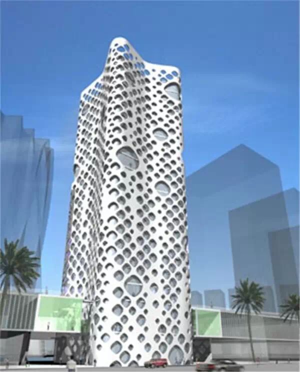 扎哈·哈迪德的“舞蹈大厦”,计划建在迪拜商业湾的开发区。此工程由三座大楼组成,从地面弯曲向上,到高空相互交织,创造出流体动画美。