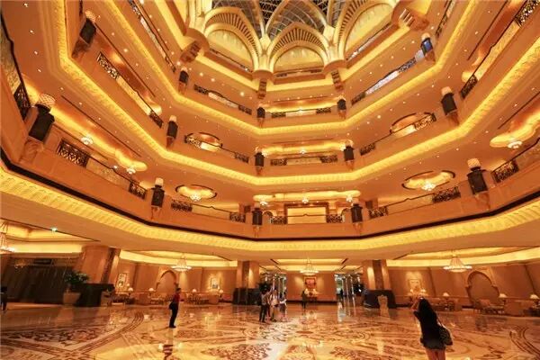 耗资15亿美元兴建,坐落yu棕榈岛上,占地113亩,有1539个房间,建筑装潢风貌如同古波斯和古巴比伦风格。