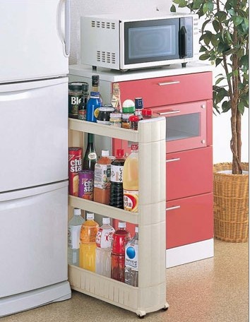 日本设计的一种叫间隙收纳架的小推车,不是什么高端的设计,但实在是太!有!用!了!我刚刚买了一个放在书柜和桌子中间的空隙,把小杂物都装进里面,每天推来推去好幸福~