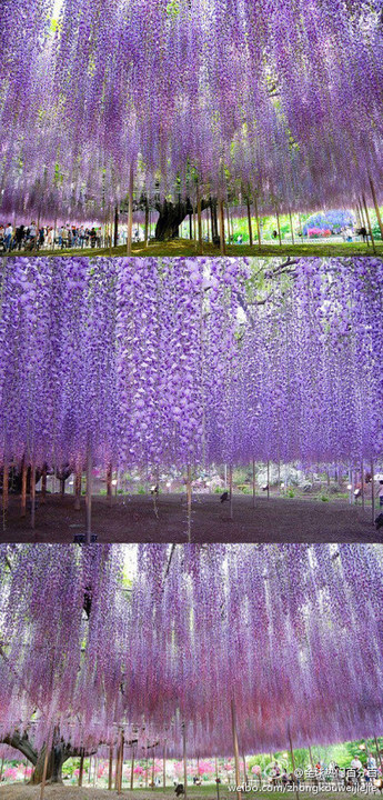 日本足利紫藤园中最大的一棵紫藤树花开。