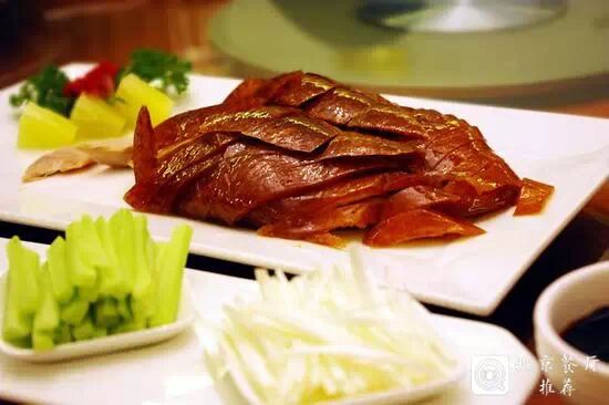 挑食理由:曾入选“京城最佳北京烤鸭餐厅”。北京烤鸭用枣木烘烤,涂以草药和香料入味,皮脆肉嫩,肥而不腻;吃的时候搭配传统薄饼和自制酱料。
