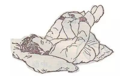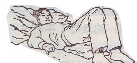 (2)仰卧沉腰法:病人仰卧在高枕上,臀尾骨部垫一个枕头,双腿屈在胸前,双手抱住,腰部自然下沉十五分钟以上。这种姿势可以使腰椎后缘间隙增大,利用韧带的动力,把突出的骸核推入椎间盘间隙内。
