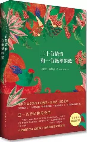送一首诗给你的爱情!《二十首情诗和一首绝望的歌》是诺贝尔文学奖得主、20世纪“最伟大的诗人”聂鲁达的情诗全集,完整收录了《二十首情诗和一首绝望的歌》《船长的诗》《一百首爱的十四行诗》,被誉为“情诗圣经”。它们穷尽了爱情的一切表达:情欲、迷恋、痛苦、绝望……是全世界传诵最广、最受读者喜爱的情诗集,全球销量超过1亿册。此次为中文版首次正式授权,由西班牙语完整译出。
