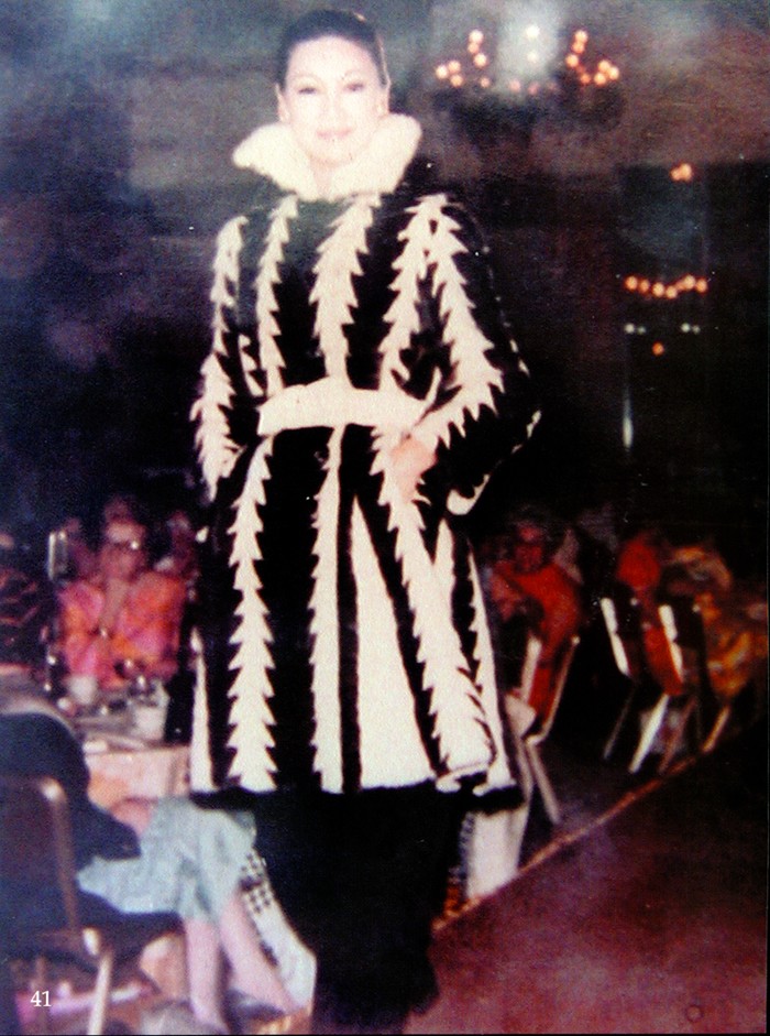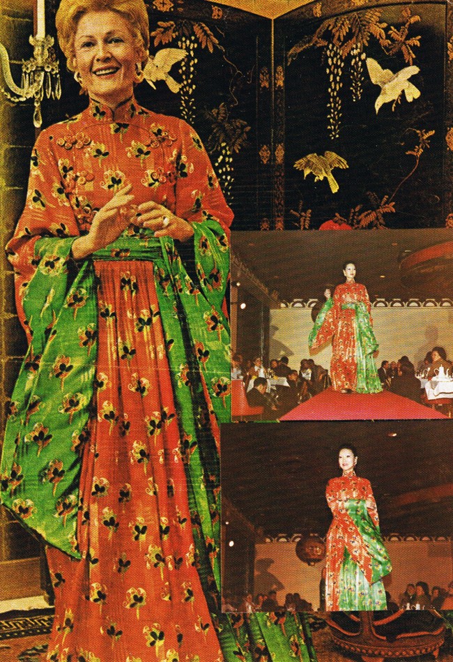 【注:图为1972年为美国前总统尼克森夫人展示第一件富有中国韵味的服装】