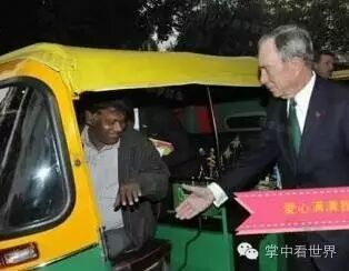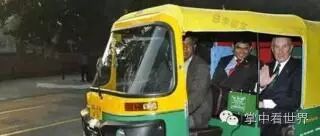 这是市长大人在印度新德里,乘坐三轮车去饭店。