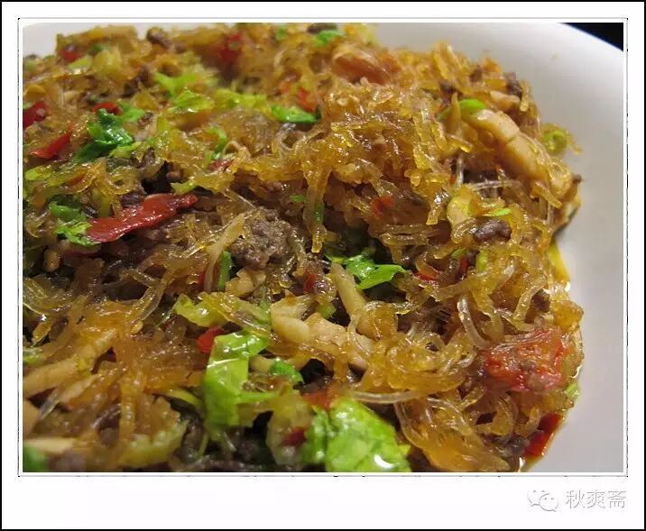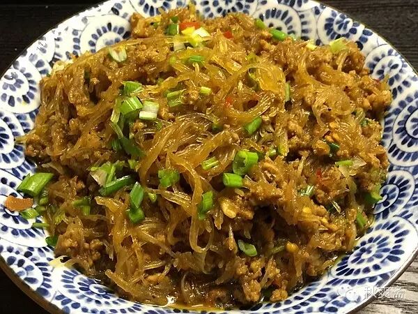 儿子从小就爱吃这道菜,所以每次回家都会给他做。名字虽然抓眼球,其实就是粉丝炒肉末:)
