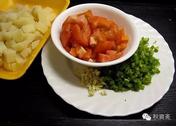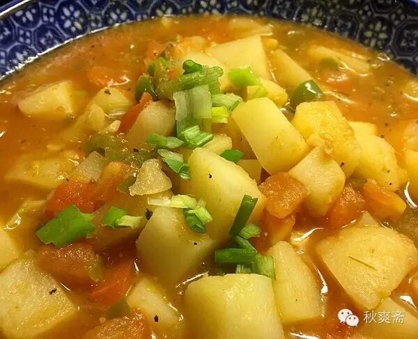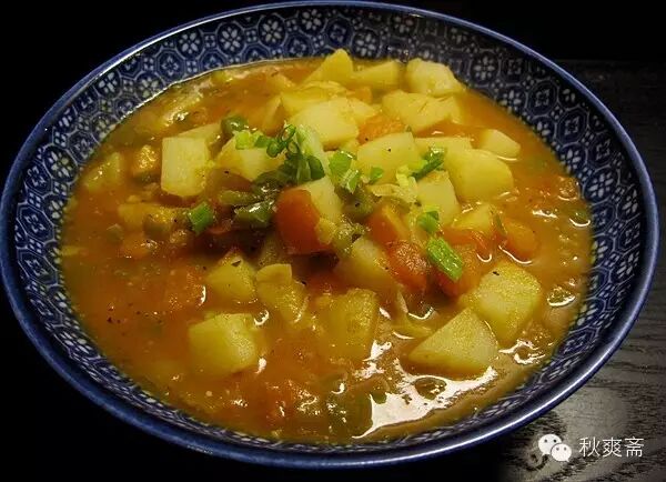 做法就简单得不能再简单了~~~锅里放一点点油,炒香蒜末和青椒碎(加点盐)。再加入切丁的番茄(讲究点可以先烫一下去皮)炒几下,加土豆丁加水,煮3-5分钟,最后调味,按自己的口味补盐,加点糖、蚝油等。我还喜欢加点墨西哥的salsa酱: