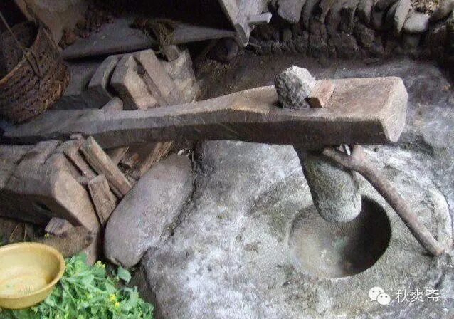 还 有一个大量制作的是耳块粑~~~中国大多数地区叫年糕。在有机器之前,这是个大工程,需要几家合力。上好的粳米经淘洗、浸泡、蒸头道、二道至熟透, 倒在这样的石碓里: