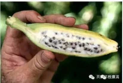 最早那些没有经过人类优化和培育的野生香蕉就是上面那样的....