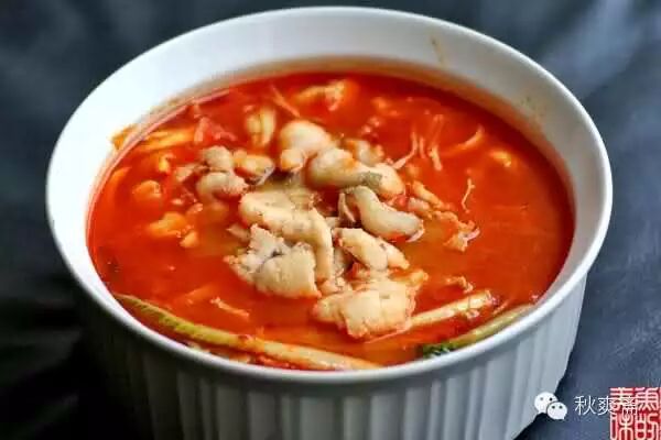 大家最为熟悉的的贵州酸汤鱼就是凯里酸汤鱼,现在你在贵州餐馆里吃的的红艳的酸汤鱼就是凯里酸汤鱼,它的传统制作采用的是西红柿红酸(又成为凯里酸)。但是这种传统的发酵方法制酸受到很多条件限制,所以现在大家根据凯里酸汤鱼的风味特色,采用西红柿,酸辣椒和柠檬汁来勾兑调配而成。较传统的酸来说,这种酸是勾兑出来的,并没有经过发酵这个过程,可能你会认为酸味的醇厚和柔和程度不好。所以在勾兑的时候必须使用新鲜的柠檬汁来调和酸味,不要使用白醋和柠檬酸来调和,否则会觉得酸味不是不足就是过于刺激,而且要加入适量的糖,这样不仅可以添味并且弱化一些刺激的酸味。