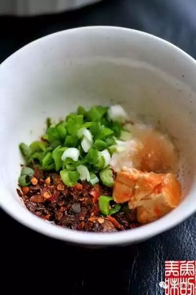 辣椒蘸水可以根据个人的口味进行不同调配,我自己最喜欢的酸汤鱼辣椒蘸水是用糊辣椒粉(糊辣椒面的制作方法请点击这儿),豆腐乳,盐,酱油,鸡精(可不放),葱花和酸汤鱼的酸汤调和的。做法很简单就是将它们混合均匀即可。吃酸汤鱼的时候,把鱼肉和蔬菜沾上辣椒蘸水吃。