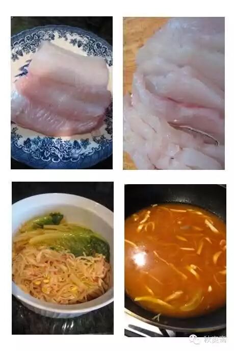 新鲜的鱼肉(应该用新鲜的活鱼一条,但是我买到的一条六磅的龙趸,所以没有用一整条。),黄豆芽,金针菇,生菜(配菜可以很随意,但是最好要有黄豆芽,因为它含有丰富的植物蛋白,可以提高汤的鲜味。)
