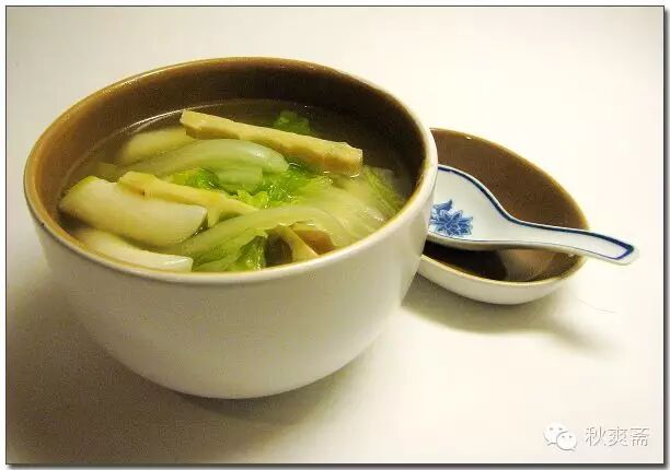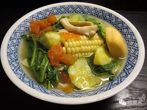 煮肉煮鸡的汤也别浪费了~~~把花椒等渣滓过滤掉,就是很鲜美的高汤啦!用来煮各种蔬菜,简单又美味: