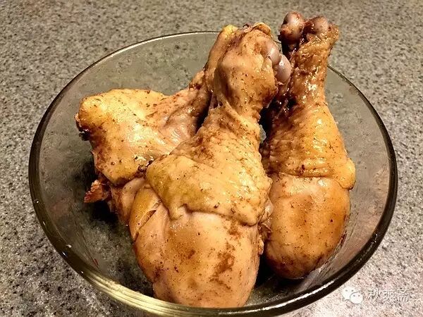 超市买的大鸡腿,做法完全一样。如果盐放少了,加个葱姜油碟:
