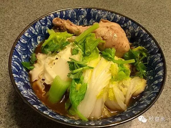 刚才下班回来,煮了几只年前就腌好的鸡腿,给山老爷下了碗面条: