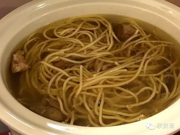 主妇炖了牛羊肉清汤,烫入意大利面: