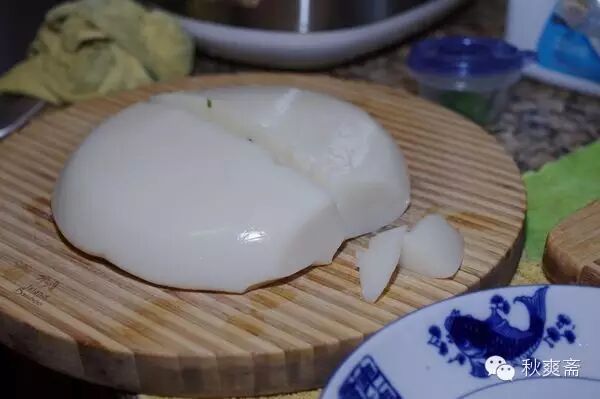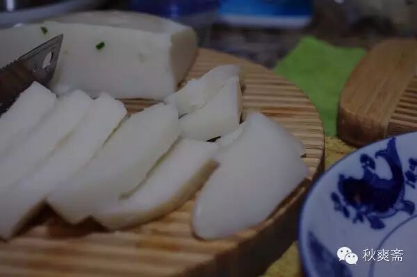 6,切的时候刀一定要蘸点水,边切边蘸,刀刀沾水。