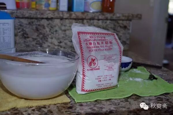1,一杯粘米面,1/4 tsp (注意:这是tea spoon) Pickling Lime,3杯水,搅匀,放40分钟以上。