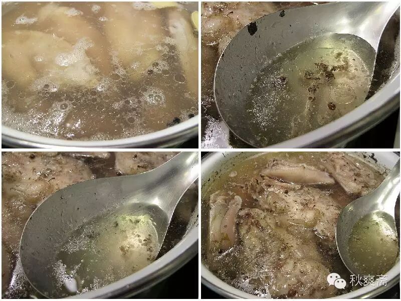 下面这张图,你可以看到炖煮过程中逼出的油脂有多少 ~~~ 红烧尤其是用高压锅烧煮是没有这么好的效果的: