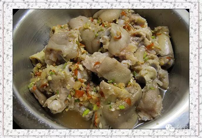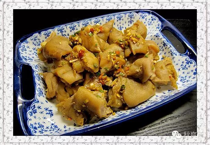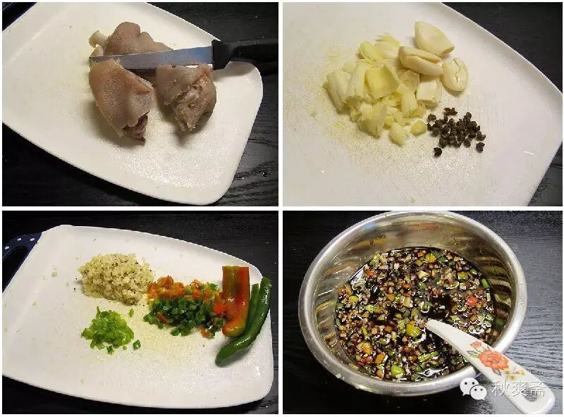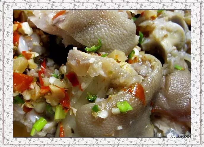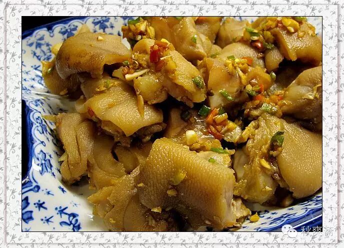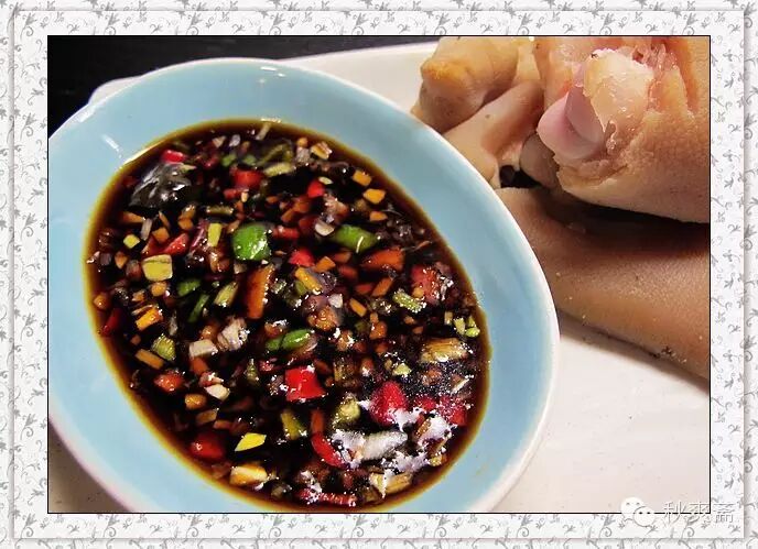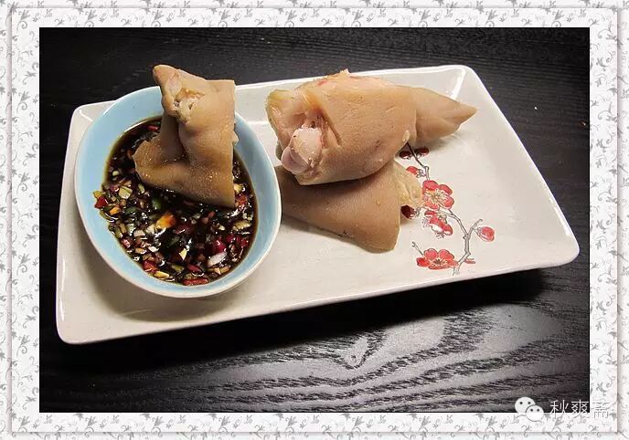 这个‘白砍蹄花’跟上次那个‘压韭茄子’一样,也是从电视节目里看来的。制作非常简单,没啥技术难点。但是烹煮需要的时间较长,适合周末在家时制作,等待的时间不妨碍做别的事情。这是一道凉菜,可以一次多做一点,冰箱里放个两三天都不会有问题~~~蘸汁里有蒜醋等杀菌的食材。当然啦,如果你的肠胃比较弱,就一次少做些,偶尔解解馋吧:)