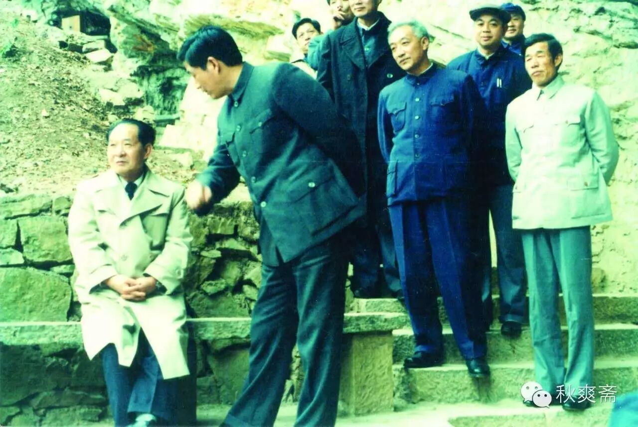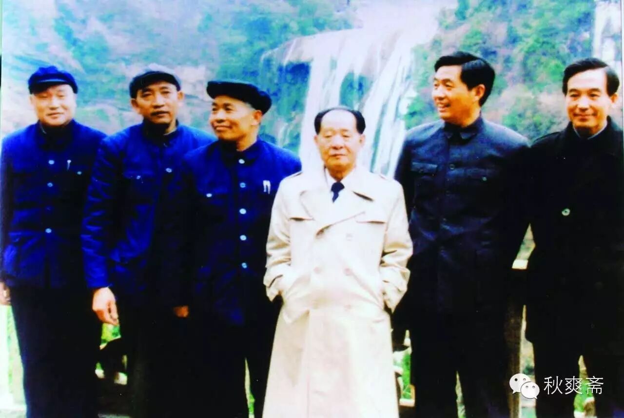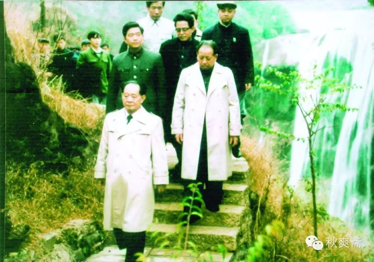 (胡耀邦总书记(前)考察黄果树(二排左)胡锦涛书记陪同 (后排右一)作者)